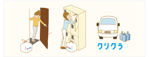 クリクラは2週間に1度、専任の配送スタッフが定期的にご自宅までお届け。ご不在でも指定の場所にお届けします。